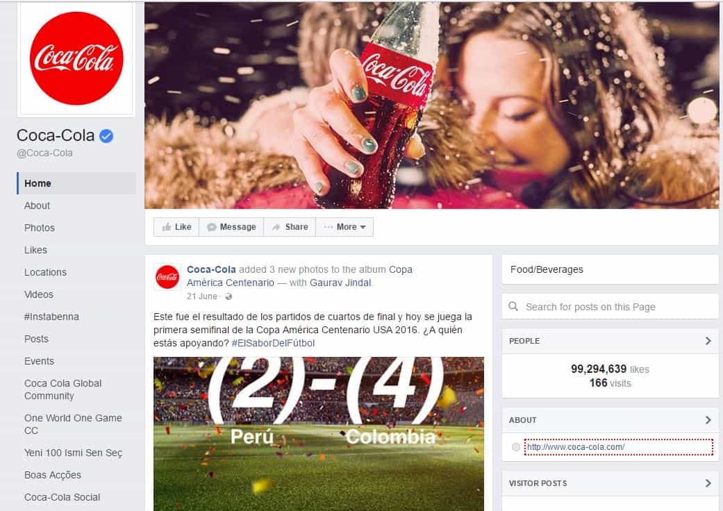 Ensuring a company’s marketing is consistent is vital. This generates brand recognition, and therefore customer loyalty. This is a strategy that Coca Cola is able to perform excellently. You only need to look at Coca Cola’s home page, Facebook account and Twitter accounts: