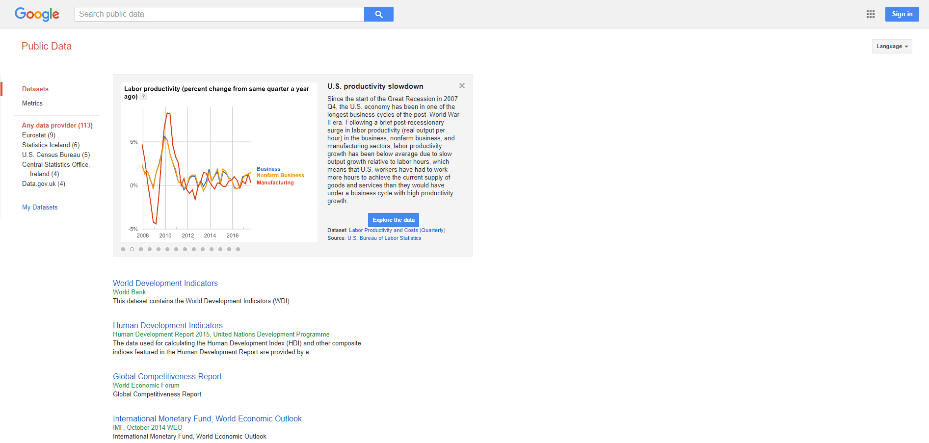 Google Public Data Explorer – Data Explorer will give visual graphs of public data and forecasts from public institutions and international organisations. It’s great if you want to analyse trends for marketing purposes.