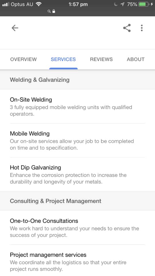 So I started looking for restaurants and hairdressers locally had their services or menu in their GMB listing. Nothing.