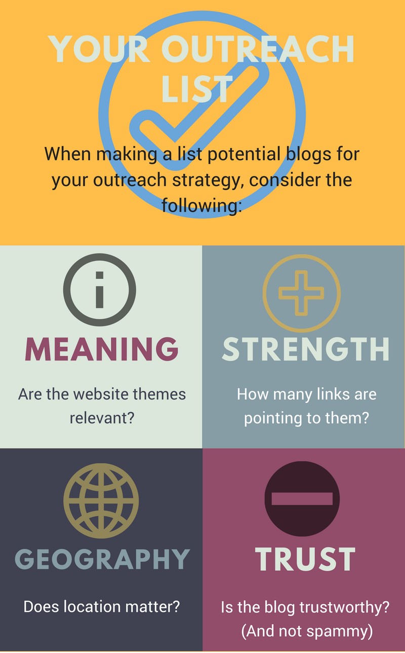 It doesn’t always have to be a key consideration, however in some cases, you might have to consider whether geography matters. For example if a blog is aimed at an audience in a specific geographical location. You might also want to consider how trustworthy the blog is. After all, you don’t want to outreach to a low-quality blog full of spam links.