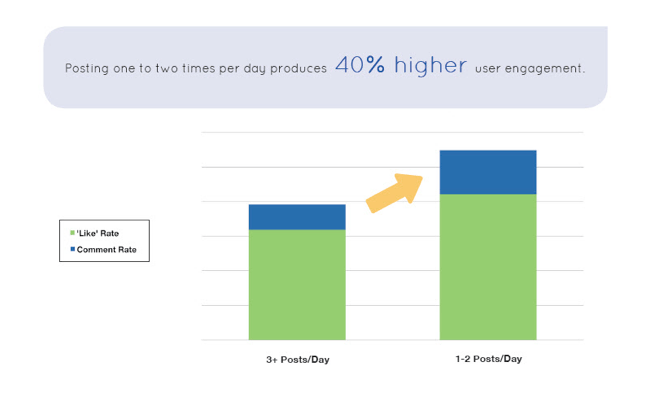 Buddy Media found businesses that post one or two times a day receive 40% higher engagement when compared to pages that post more than three times a day. Rather than focus on the quantity of posts on your Facebook page, it’s better to focus on the quality.