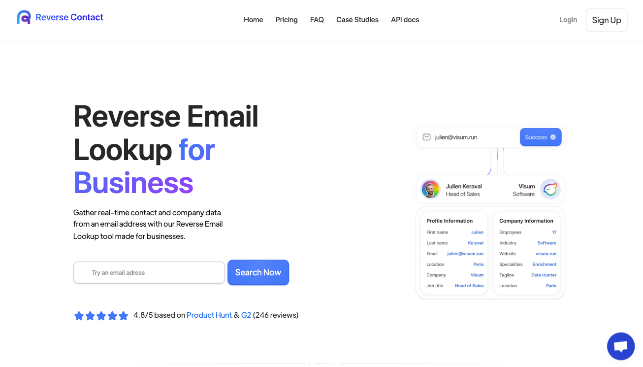 For instance, if you check out the Reverse Contact header, you'll see that it includes a clear value proposition and an in-app screenshot to instantly demonstrate the product's capability and value.