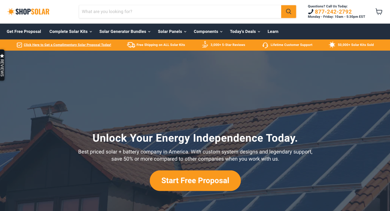 Check out how ShopSolar does it on its site. Instead of inviting web visitors to "shop" or "browse," this business encourages prospects to "start a free proposal." This wording doesn't just communicate that they'll receive a personalised offer. More importantly, it emphasises that the offer doesn't require a commitment, making it much more likely that people will convert into leads.