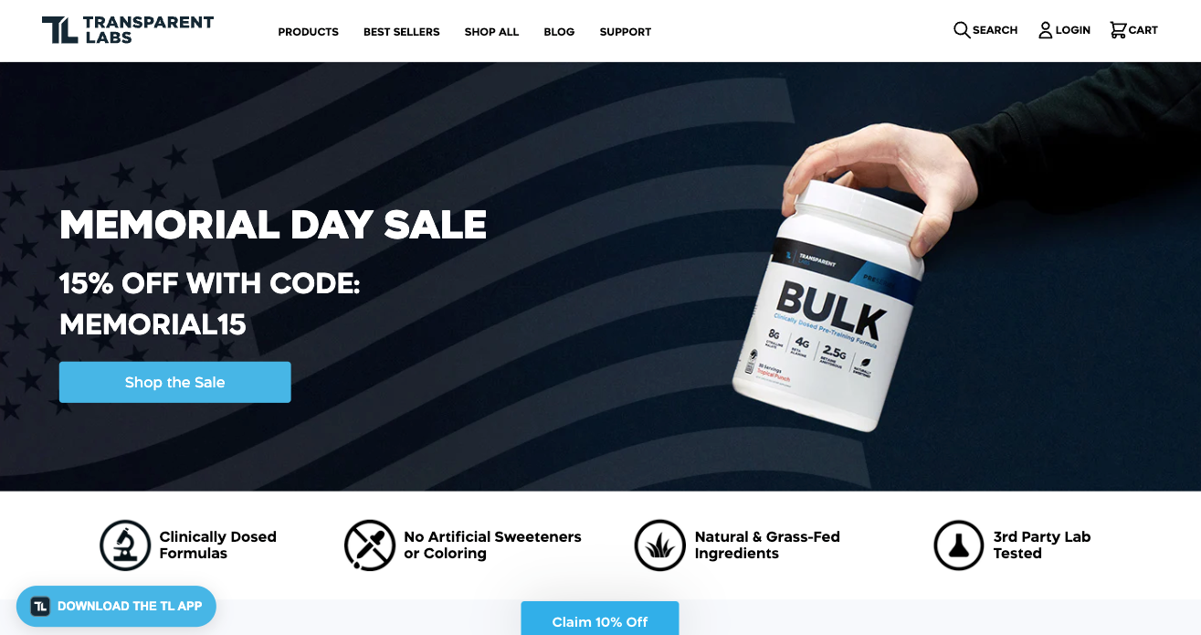 For a great example of how you can do this, check out Transparent Labs. This brand uses multiple visual elements to highlight its products' "natural" aspects. It says that the ingredients are "natural and grass-fed" and points out that the supplements contain no artificial sweeteners or colouring. Moreover, the brand emphasises that each formula is clinically dosed and third-party tested, using trust signals to further underline its credibility as a business that puts customer safety before profits, unlike many others in the fitness and health industry.