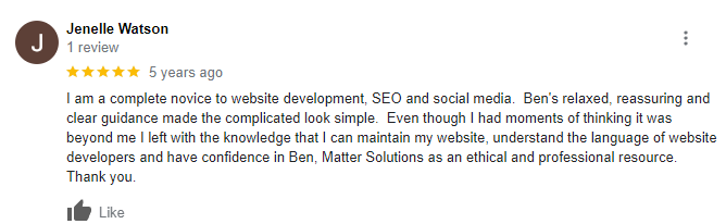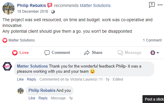 We urge you to go and check out what people have to say about Ben, our founder, and the team at Matter Solutions.