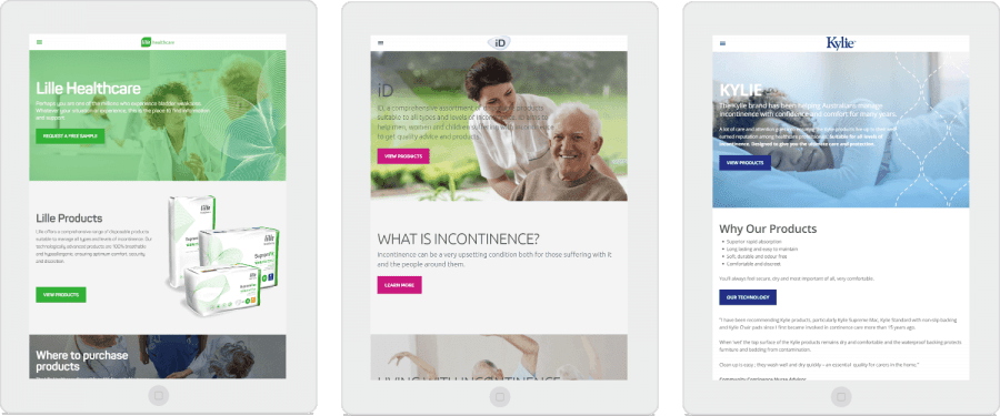 There existed separate sites for each of the main brands previously, and within discussions, it was realised that to be able to best manage these and promote the service range clarity it was best to bring them together under the single Ontex Healthcare Australia domain: http://www.ontexhealthcare.com.au/.